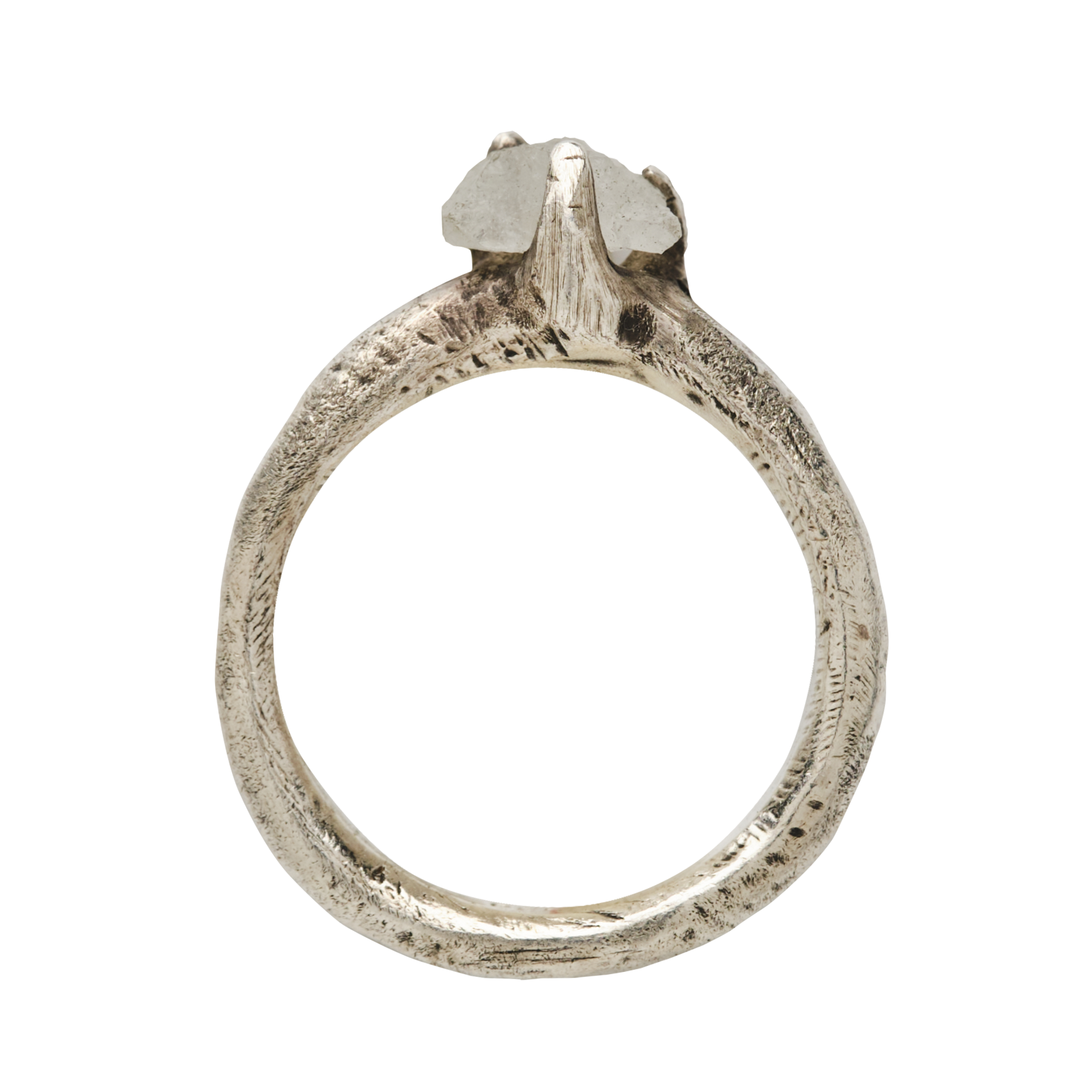 수작업으로 표현된 엔틱 디테일 실버 925 위에 러프 아쿠아 마린이 올려진 반지.